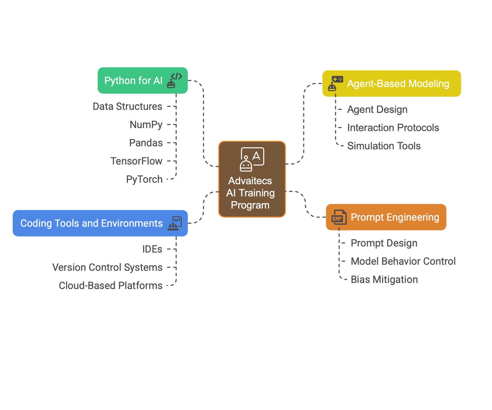 As the cornerstone of AI development, our modules provide in-depth training in Python programming. Participants will master core concepts, data structures, algorithms, and libraries essential for machine learning and AI applications.